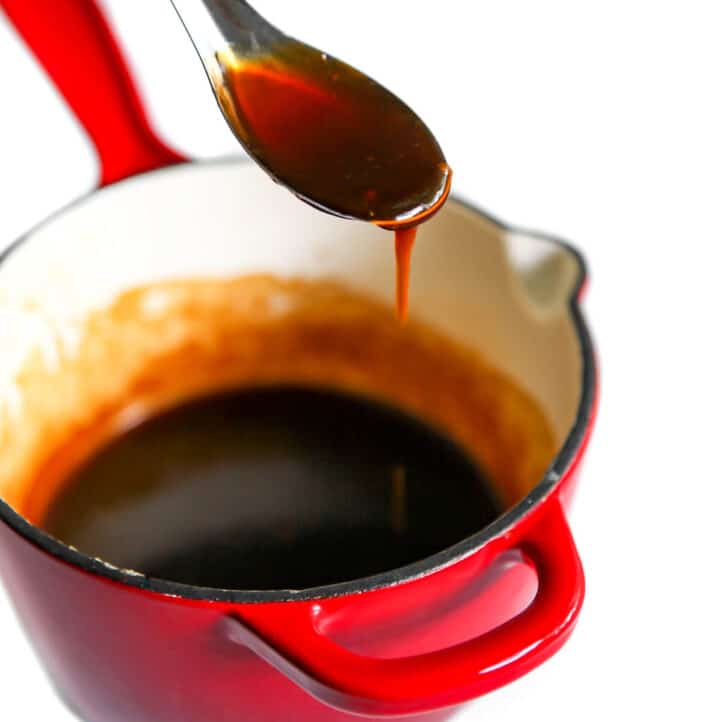 The Best Teriyaki Sauce Recipe - Belly Rumbles Simmer for 30 minutes, stirring occasionally. After 30 minutes the sauce quantity will have reduced, remove the pot from the heat. Place cornflour/cornstarch in a small bowl. Add a tablespoon or two of the sauce. Mix well until there aren't any lumps. Pour the cornflour/cornstarch slurry into the pot of sauce.